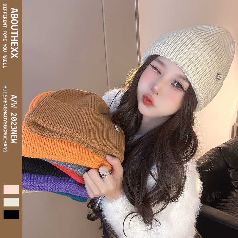 帽子の女性秋冬2023新作の顔が見えるニット帽