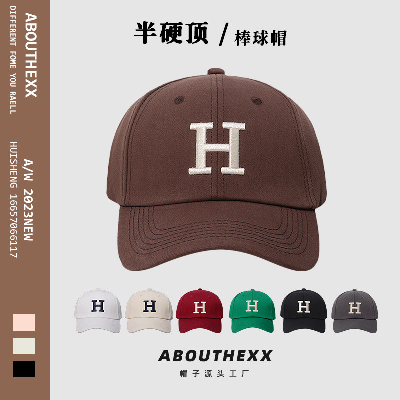 Ins潮半硬頂鴨舌帽韓国版アルファベットh帽子女子春夏新作学生百合顔小野球帽