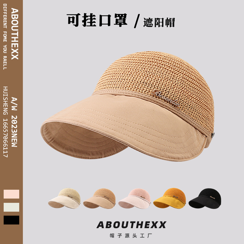 マスクをかけることができます。夏の日焼け止め帽子の女性草編みは日よけ帽子をつなぎ合わせます。