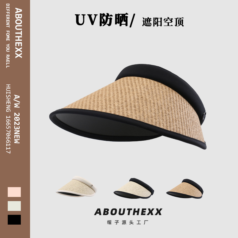 夏の帽子の女性の草の編みのuv黒いゴムの日焼け止めの日よけの帽子の紫外線を防ぐ日よけの帽子の女性の屋外の旅行の空の帽子
