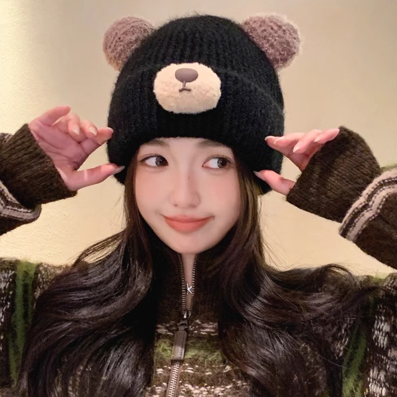 漫画の熊のニットの毛糸の帽子の子供は秋冬に厚くて保温して防寒します。