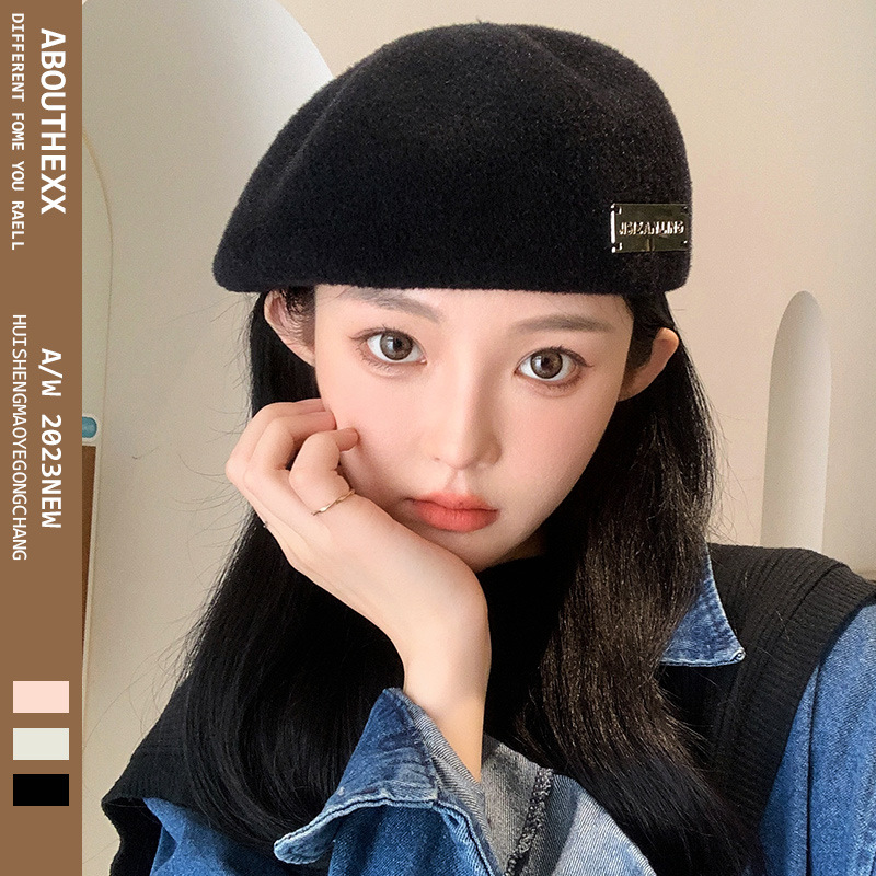 帽子の女性秋冬韓国版親子モデルウールベレー帽女性英倫復古日系百合画家帽子女性