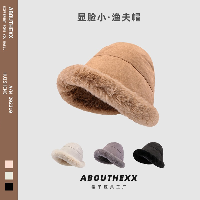 秋冬の漁師の帽子の子供の2024の新型の子羊の毛の絨毛の帽子の韓国版の百合は顔の小さい盆の帽子の日系の屋外の男を現します。