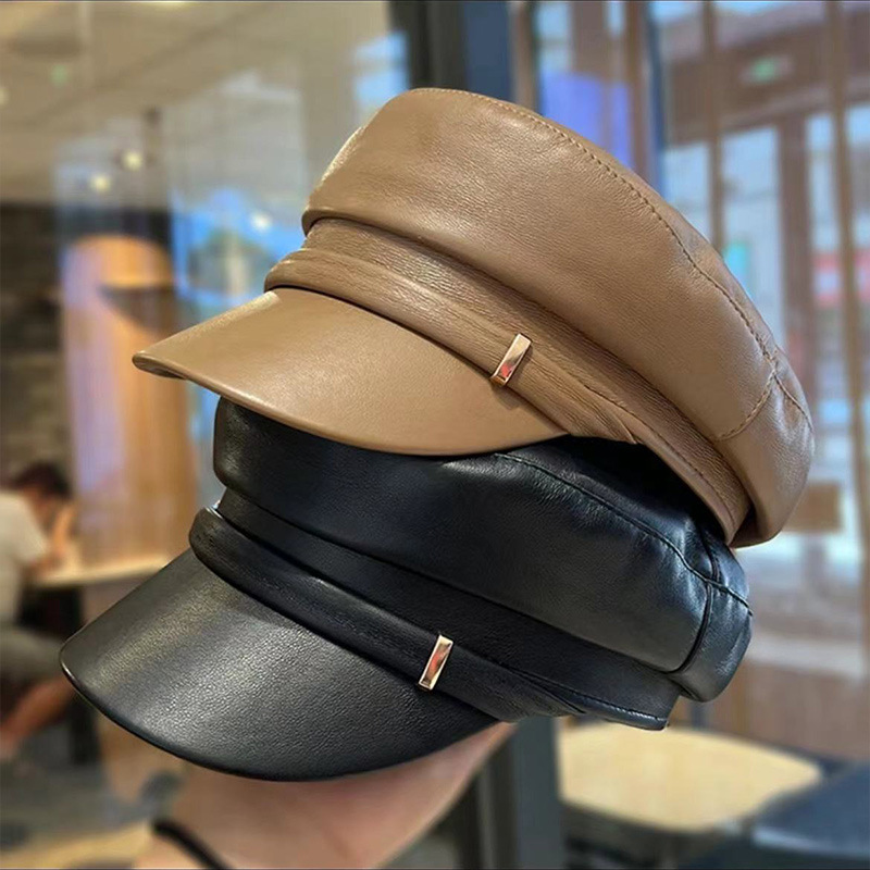 日系レトロpu皮八角帽子子供春秋文芸気質平頂海軍帽子