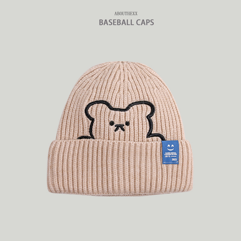 帽子の女性の秋冬の新型の熊の刺繍のニットの帽子の韓国版の百合の毛糸の帽子のカップルの笑顔の布の標識の冷たい帽子の男