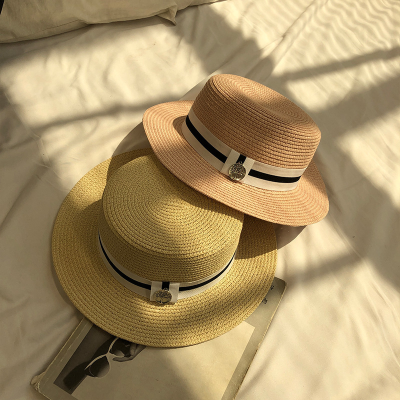 夏の帽子の女性の蝶結びの平頂の麦わら帽子の英倫の復古の小さい礼帽の男性の潮の日よけの日焼け止めのビーチ帽の卸売り