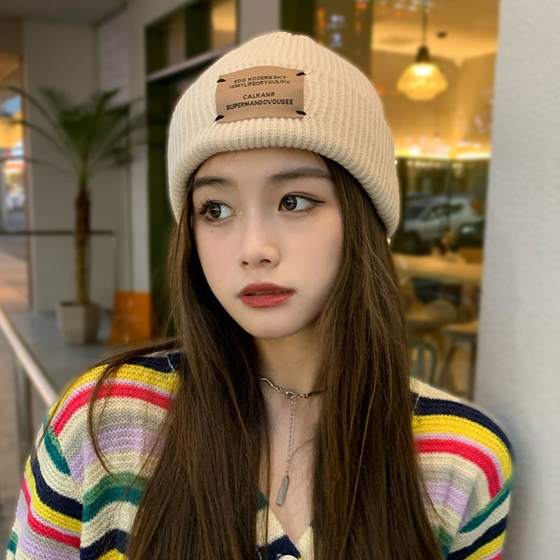 帽子女性秋冬韓版百合ニット帽カスタム刺繍ロゴキャンディー色毛糸帽保温冷帽男潮
