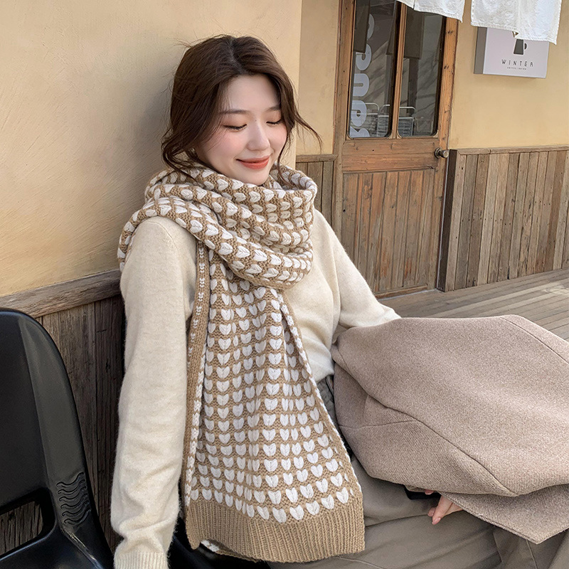 秋冬新作マフラー女性韓国版ニット保温マフラーins潮学生百合ミニ愛マフラー卸売り