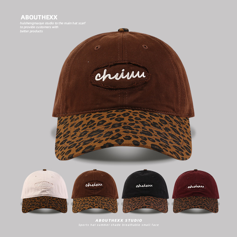 韓国のレトロな豹の紋様のアルファベットの野球の帽子の子供のアメリカの百合の日焼け止めの色は顔のアヒルの舌の帽子の男性の潮を現します。