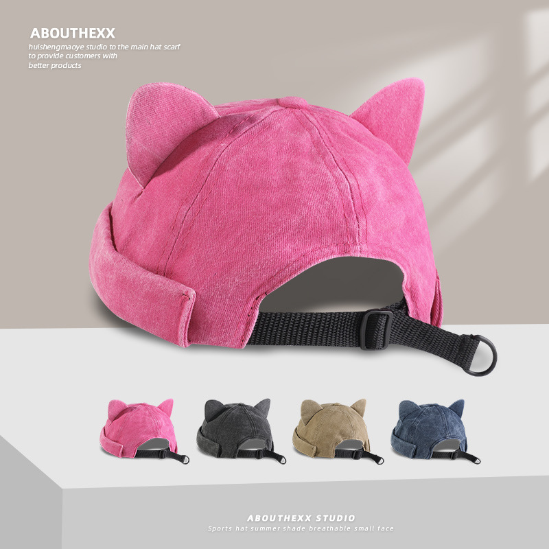 かわいい猫耳ビーニー帽子、男性と女性のための外国貿易地主帽子、多用途メロンスキン帽子、洗濯済みの古いヤッピーハット卸売