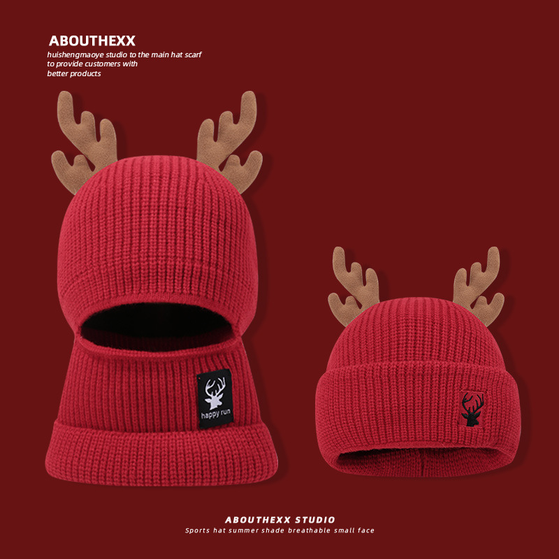 秋冬のかわいい帽子の女性のベルベットはクリスマスプレゼントの鹿の角の毛糸の帽子のニットの保温のバラクの帽子を厚くします。