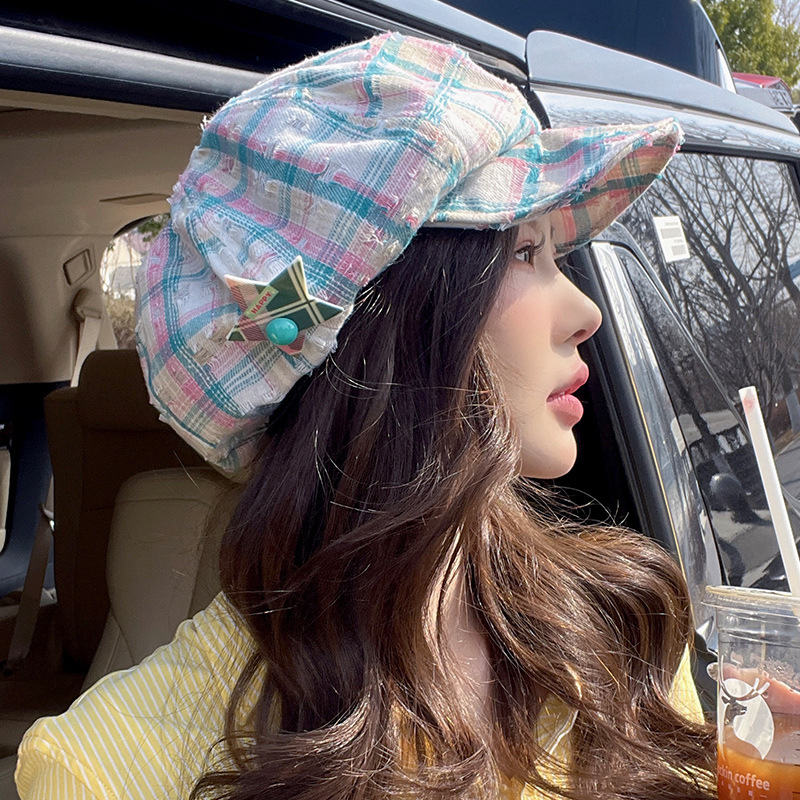 レトロな格子縞の星は布の帽子の子供の韓国版を貼ります。