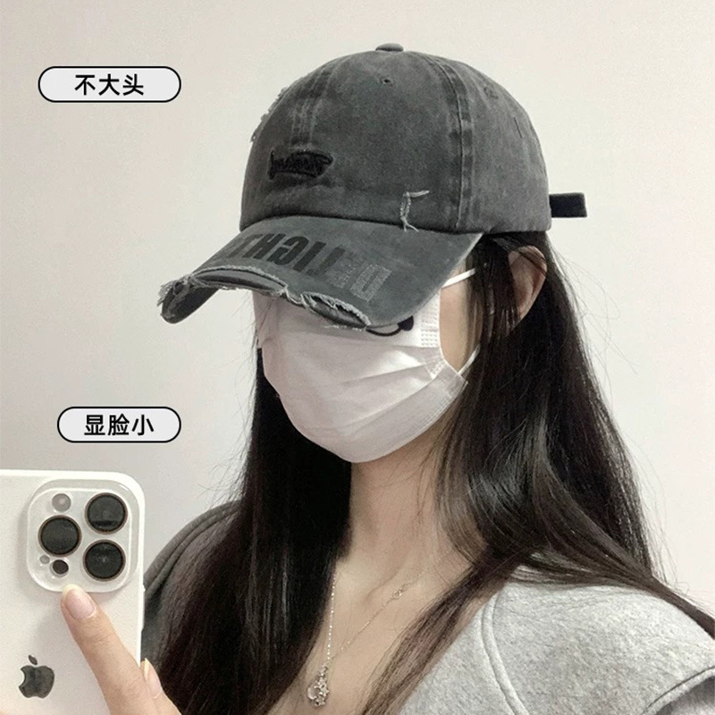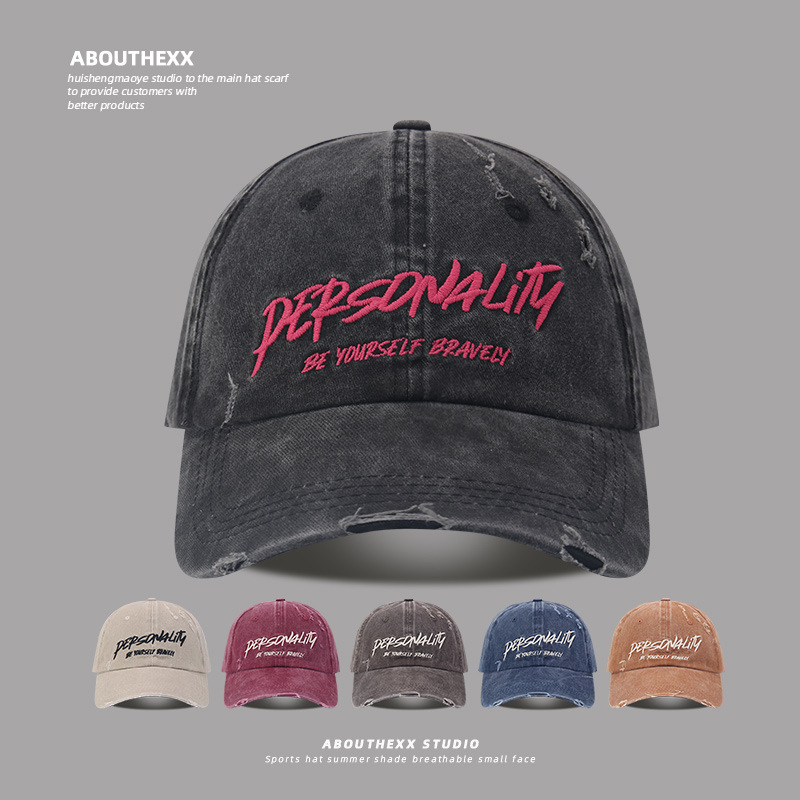 アメリカの水洗いは古い穴を割った野球の帽子を作ります。