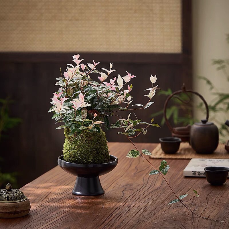 花と葉のトレメラ苔ボール、カラフルなつる性の緑の植物、屋内花、オフィスのデスクトップ盆栽植物、四季咲き