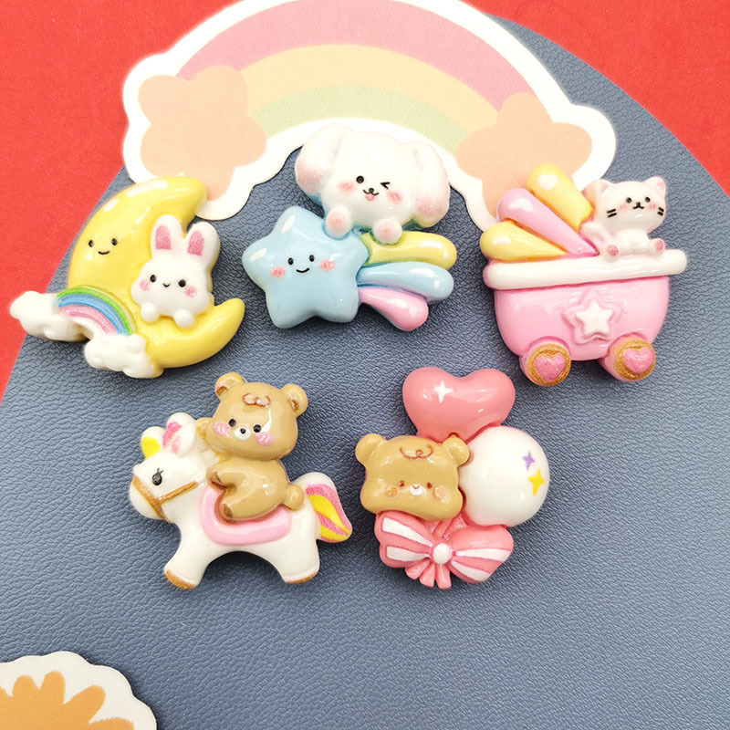 漫画光沢のあるハッピーウサギ子犬猫クマ diy 樹脂アクセサリー携帯電話ケース頭飾りヘアピン水カップステッカー