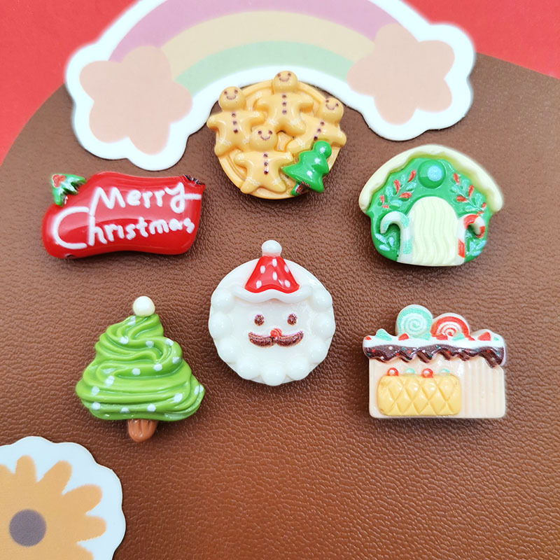 漫画風光沢ミニサンタクロースツリー鹿DIY樹脂アクセサリーヘアピン携帯電話ケースネイルアートステッカー