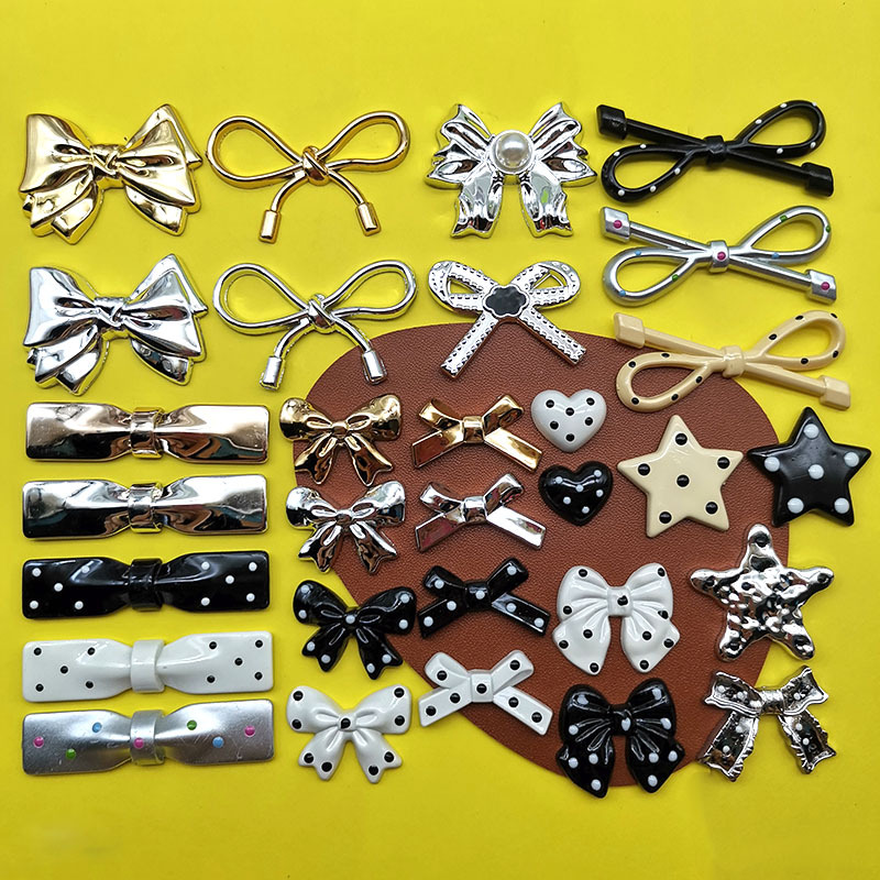 小香風メッキ波点蝶ネクタイ星プラスチック部品diyヘアピン携帯ケースアクセサリー靴ボタン