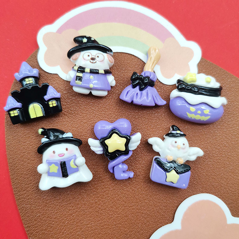 漫画光沢のあるハロウィンゴーストほうき城樹脂アクセサリー diy 帽子ヘアピン携帯電話ケースジュエリーパッチ