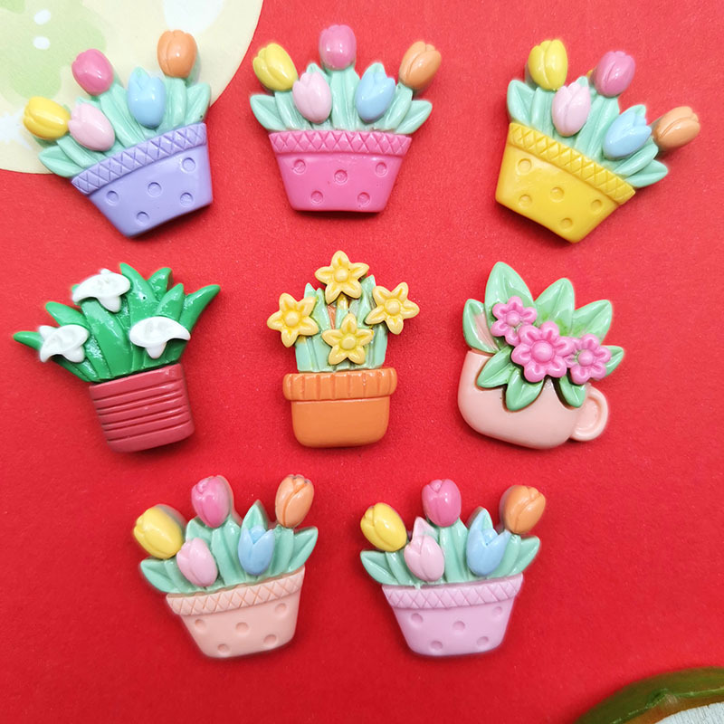 シミュレーションの明るい顔の鉢植えのチューリップの花のかごの樹脂の部品のdiyクリームのゴムの携帯の箱の髪飾りの髪はコップを挟みます貼ります。