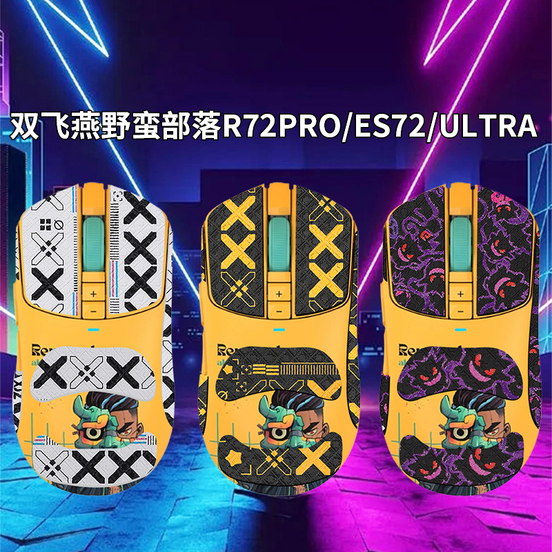 双飛燕野蛮部族ES72 Ultraプリント滑り止めシールr 72 Pro無線マウス吸汗シールを適用する