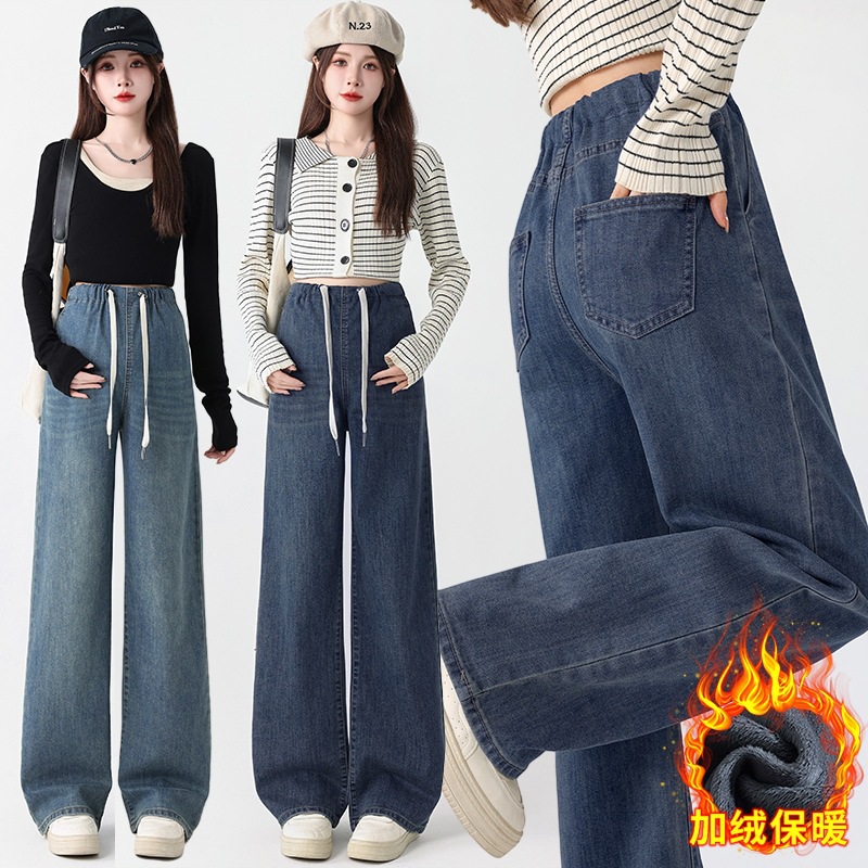 2024冬の新型妊婦ジーンズの弾力性高品質綿デニムとベルベットの厚いカジュアルなストレートパンツ