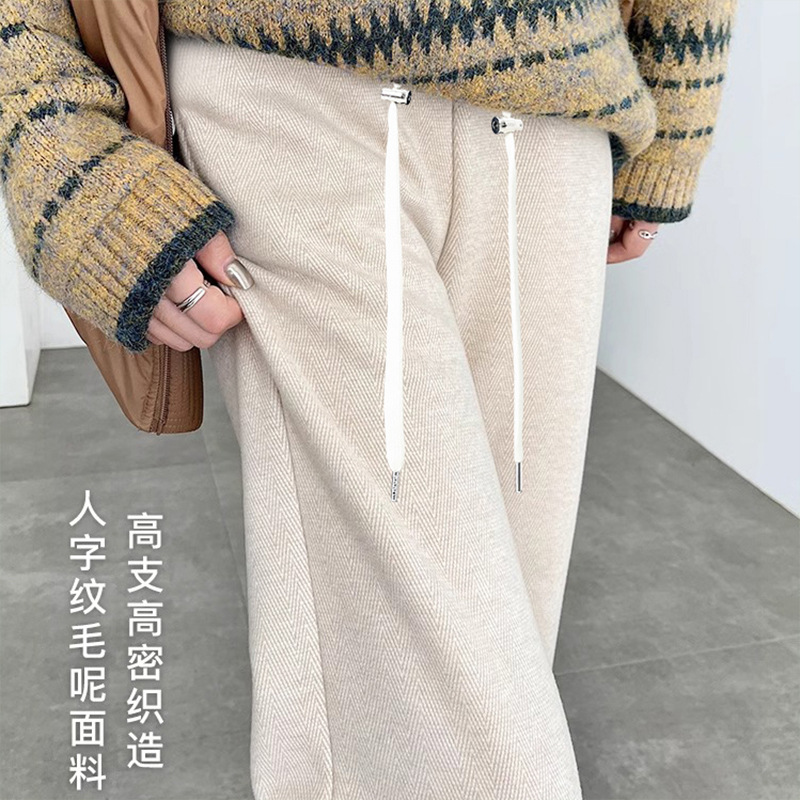 妊婦の人の字の紋様のベルベットの厚いカシミヤの広脚のズボンのストレートパンツの妊婦のズボンのズボンのゆったりしたタイプ