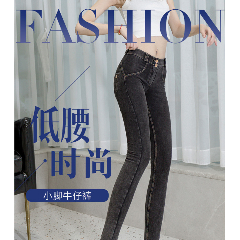 2024腹の小さい足のジーパンの女性の秋冬の新型の修身の弾力性の高い腰の9分の鉛筆のズボン