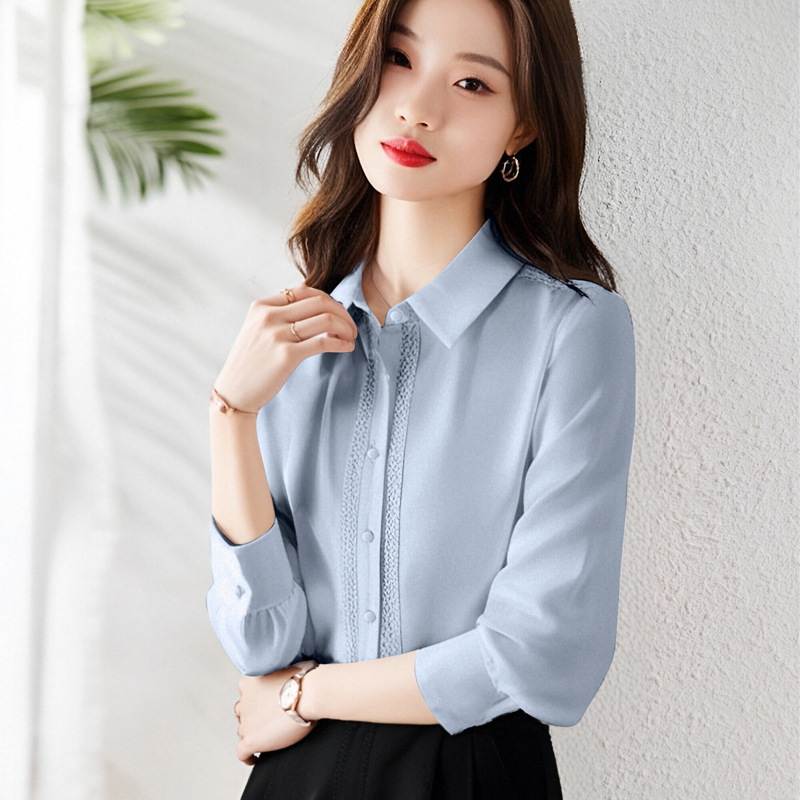 2024秋の新中国式純色花卉刺繍帯シャツ女性スポット直販通勤長袖女性シャツ