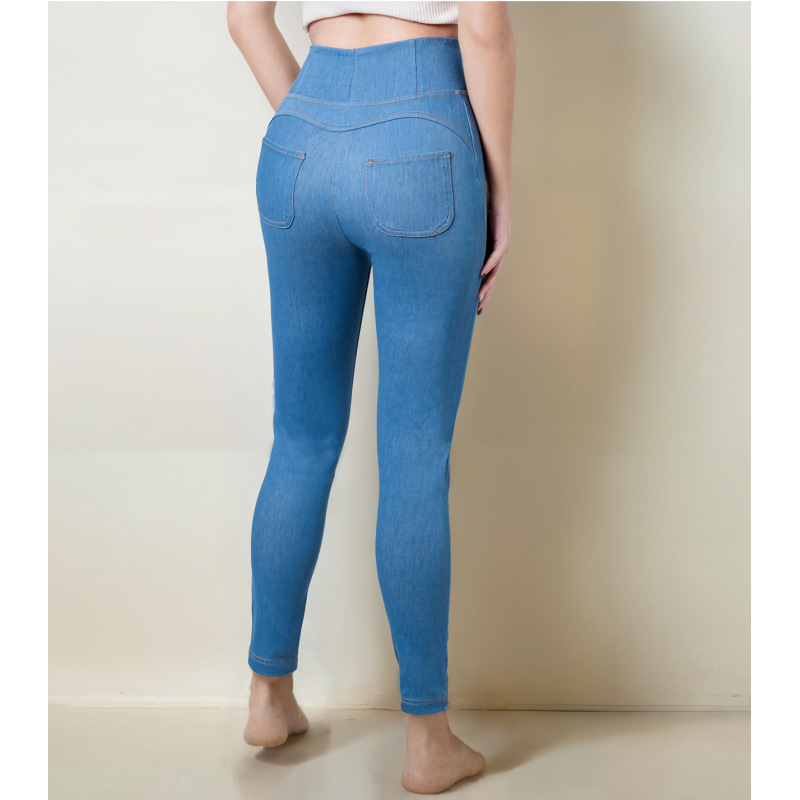 2024高腰で腹を閉じた足のジーパンの女性秋冬の新型の修身弾力性の高い腰の9分の鉛筆のズボン
