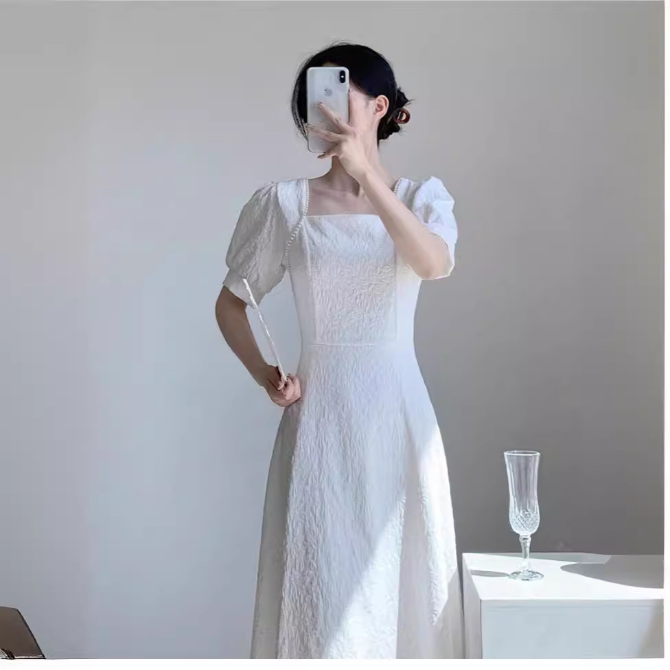 2024夏の新型フレンチレトロ高級感気質女神范方襟真珠痩せジャカードワンピース