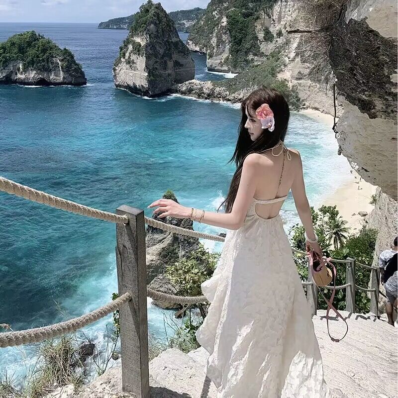 2024年夏新作 リゾート風ワンピース レディース 胸パッド内蔵 超おしゃれ ホルターネック バックレス ロングワンピース