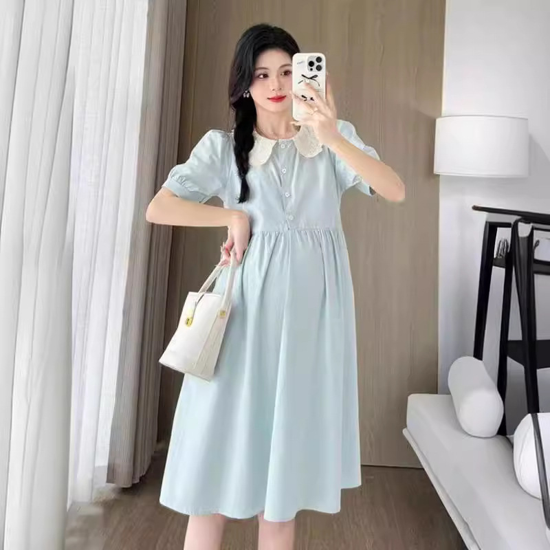 妊婦のワンピースの女性は新型の甘美な半袖の子供の襟の中の長いタイプの妊婦の服を着て腹を覆いますファッションのスカート