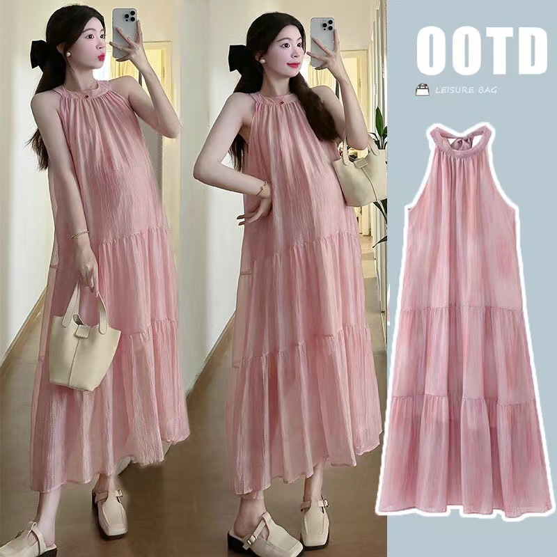 妊婦のワンピースの夏のフランス式の高級な首のワンピースは休暇の風の長いタイプに染めてゆったりしていて痩せているa字のスカートを現します。
