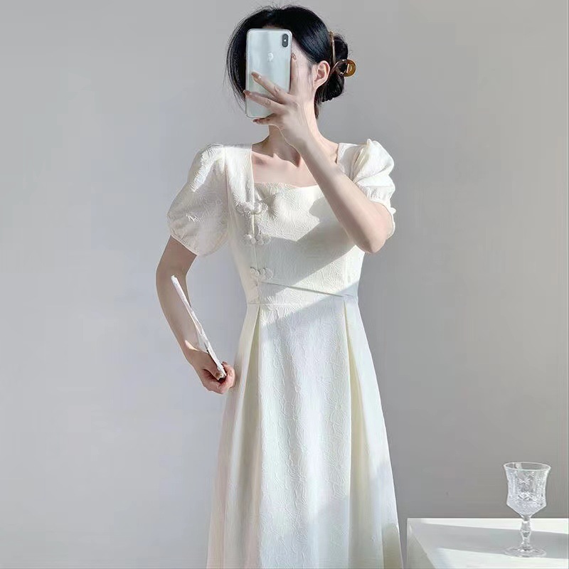 新中国式2024夏新作デザイン優しい風砕花高級感角襟レトロ泡袖ウエストワンピース