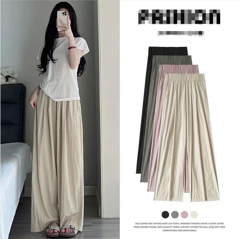 アンズ色の氷の糸の広い足のズボンの女性の夏の薄いタイプの高い腰の垂れ下がった感のカジュアルな怠惰な風のまっすぐな筒の綿麻の山本のズボン