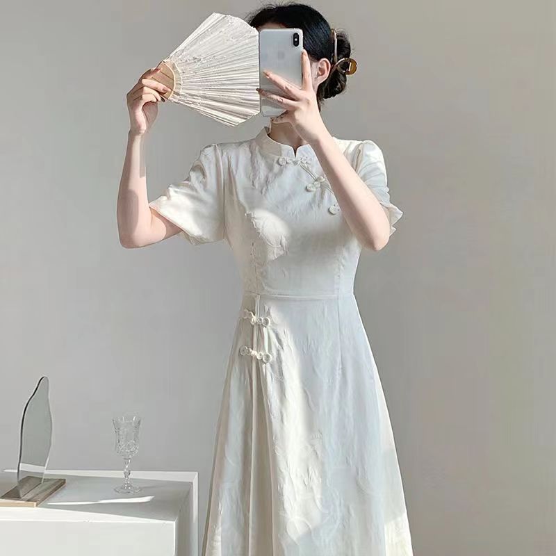 2024夏新中国風改良チャイナドレス絶美高級デザイン感ジャカード気質ワンピース