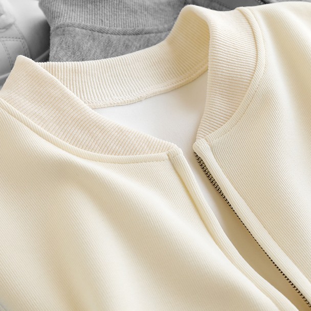 高颜値、早秋に担当した襟の丸首を合わせてゆったりとした単色の長袖野球服のコートの女性