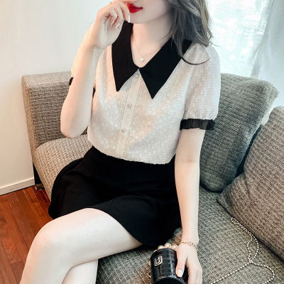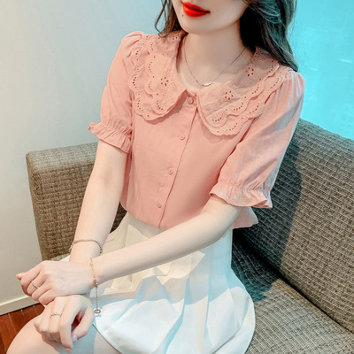 ベビー襟半袖シフォンシャツ女性夏服2023年夏新作ファッション減齢洋気シャツ