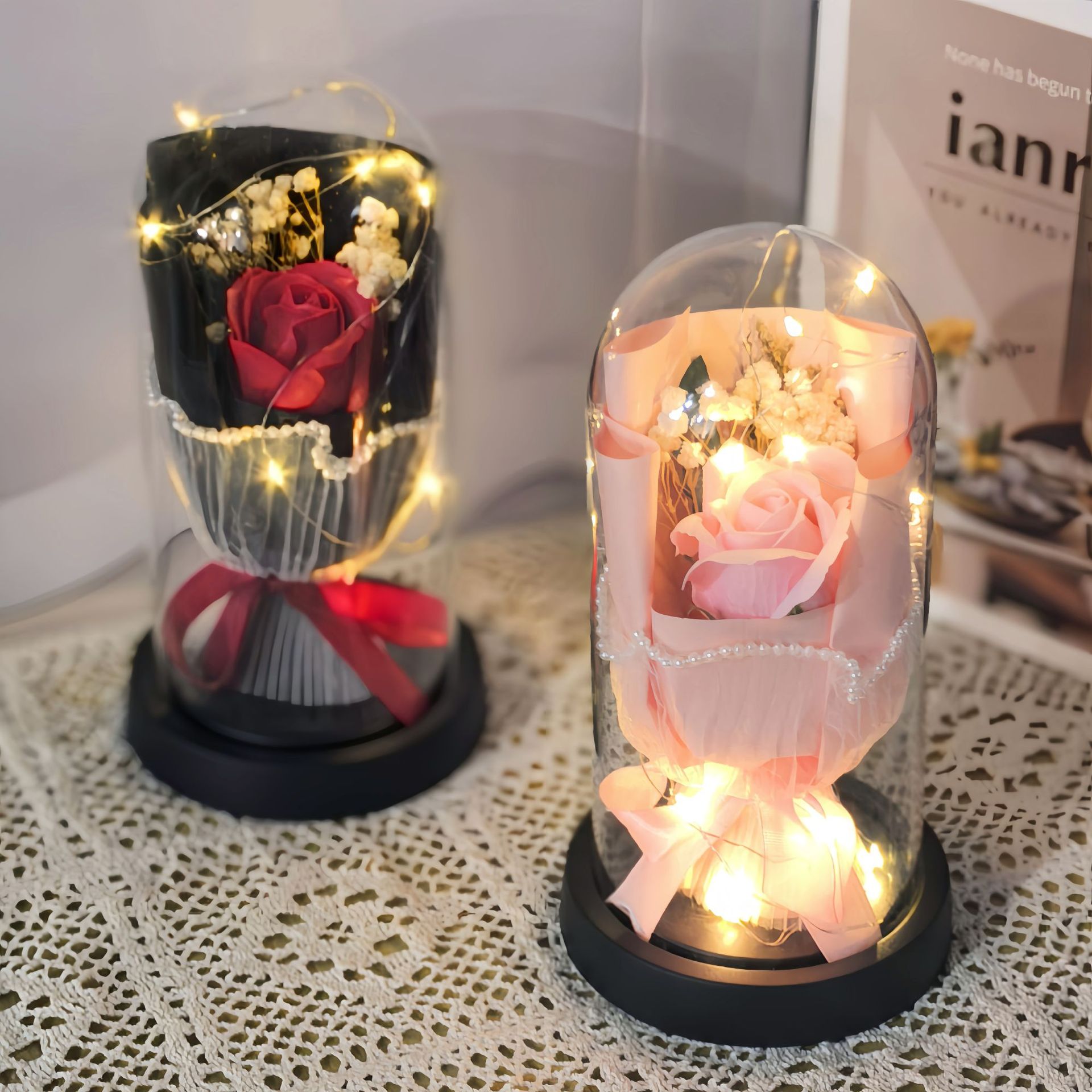 クリスマスやバレンタインデーのギフトに、永遠の花、造花のバラ、ガラスのドームに入った装飾品として、彼女や奥様に贈ってください。