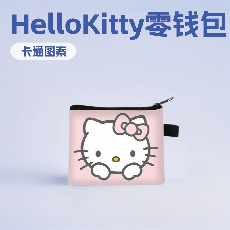新しいハローキティ小銭入れ、子供用ショートキーカードホルダー、耐摩耗性ポリエステル製、かわいいミニ収納バッグ