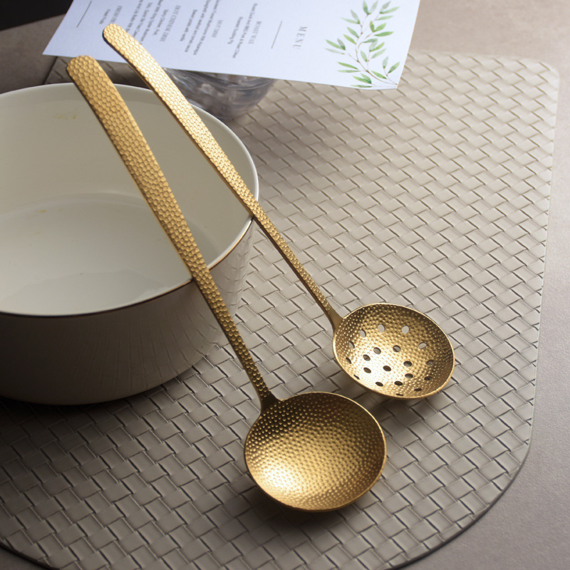 軽くて豪華なハンマーの紋様の日本式の304ステンレスの火鍋のスープはスプーンを漏らしてスープを飲んでギョーザをすくいます。