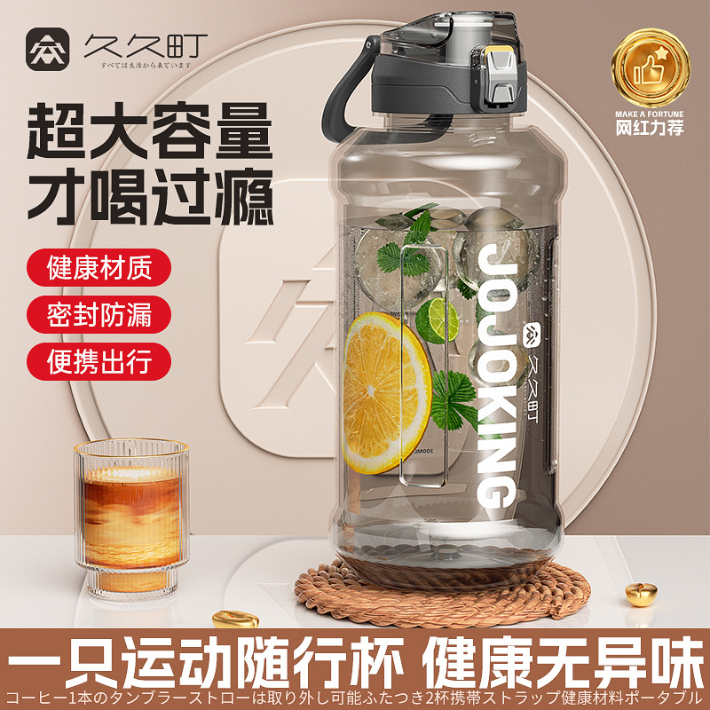 大容量トンバレル夏スポーツ水カップスケールストロープラスチックカップ耐高温水筒男女大水筒