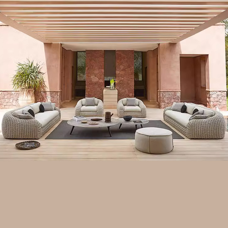 屋外テスリンソファ庭屋外バルコニー籐編みソファ別荘籐編み家具アルミ合金籐編みソファ