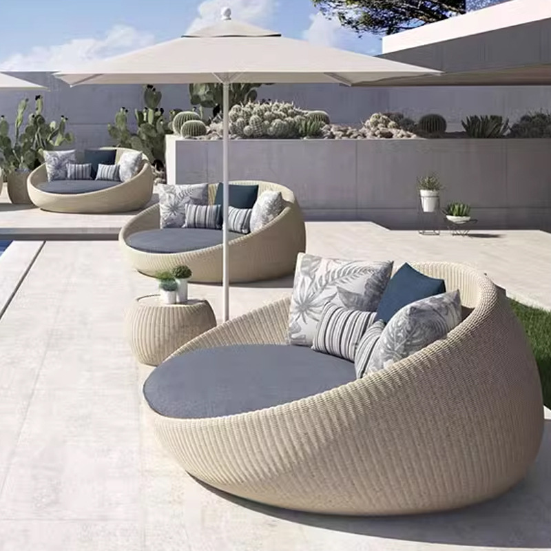 ラウンド屋外ソファホテルヴィラ屋外オープンエアカウンターシートソファ屋外パティオソファ湾曲した籐ソファ