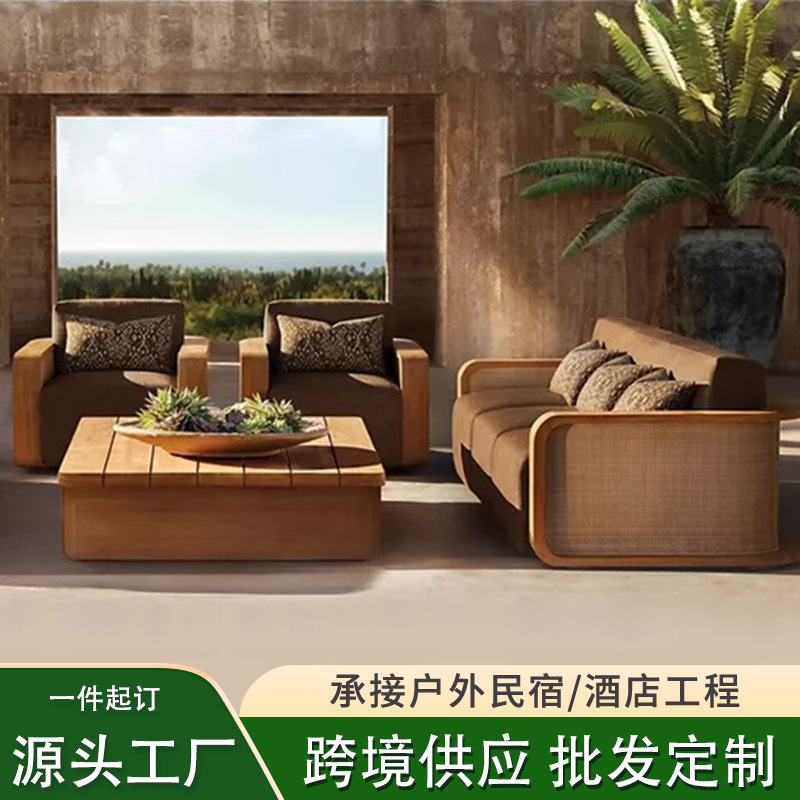 屋外中庭ソファ民宿屋外用チーク材ソファセット屋外用籐製ソファ営業所モデルルーム