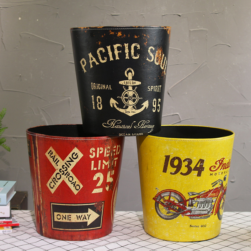 家庭用バーktv蓋なし復古皮革ゴミ箱キッチントイレ収納筒客間清掃雑物桶