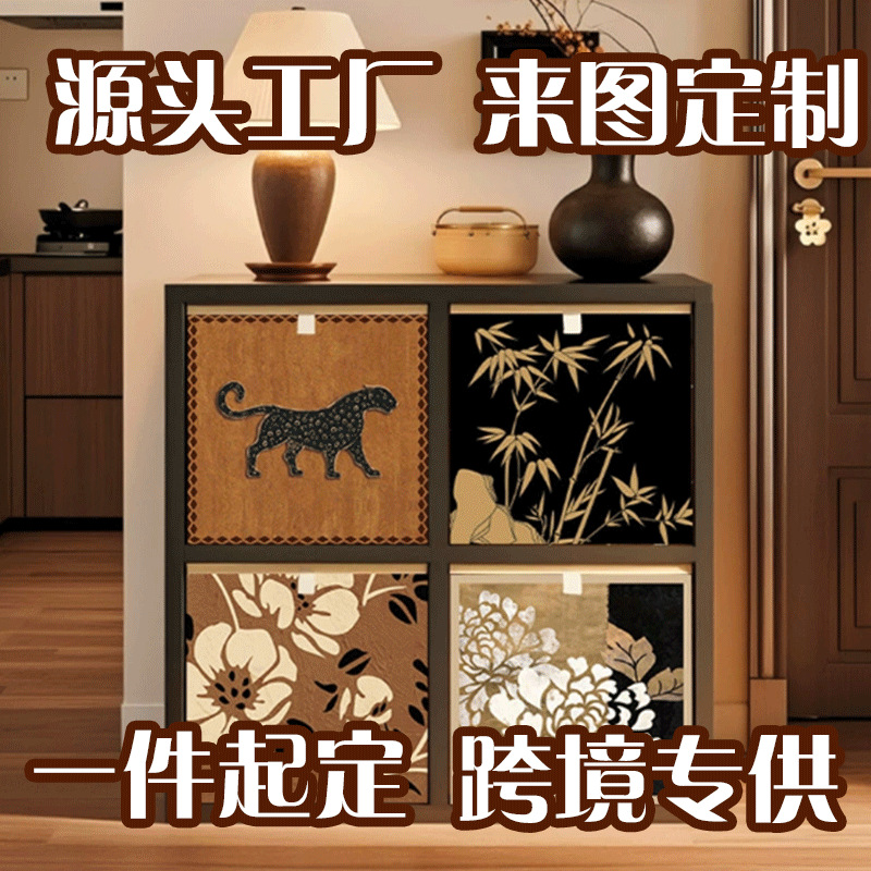 中古風家庭用収納ボックス大容量折りたたみ格子庫玩具整理箱布芸折りたたみ収納かご