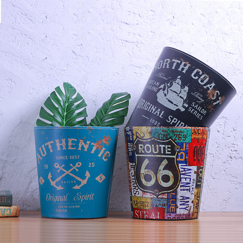 レトロ革防水ゴミ箱家庭用キッチン寝室大サイズ無蓋紙かご創意レストランバー収納桶
