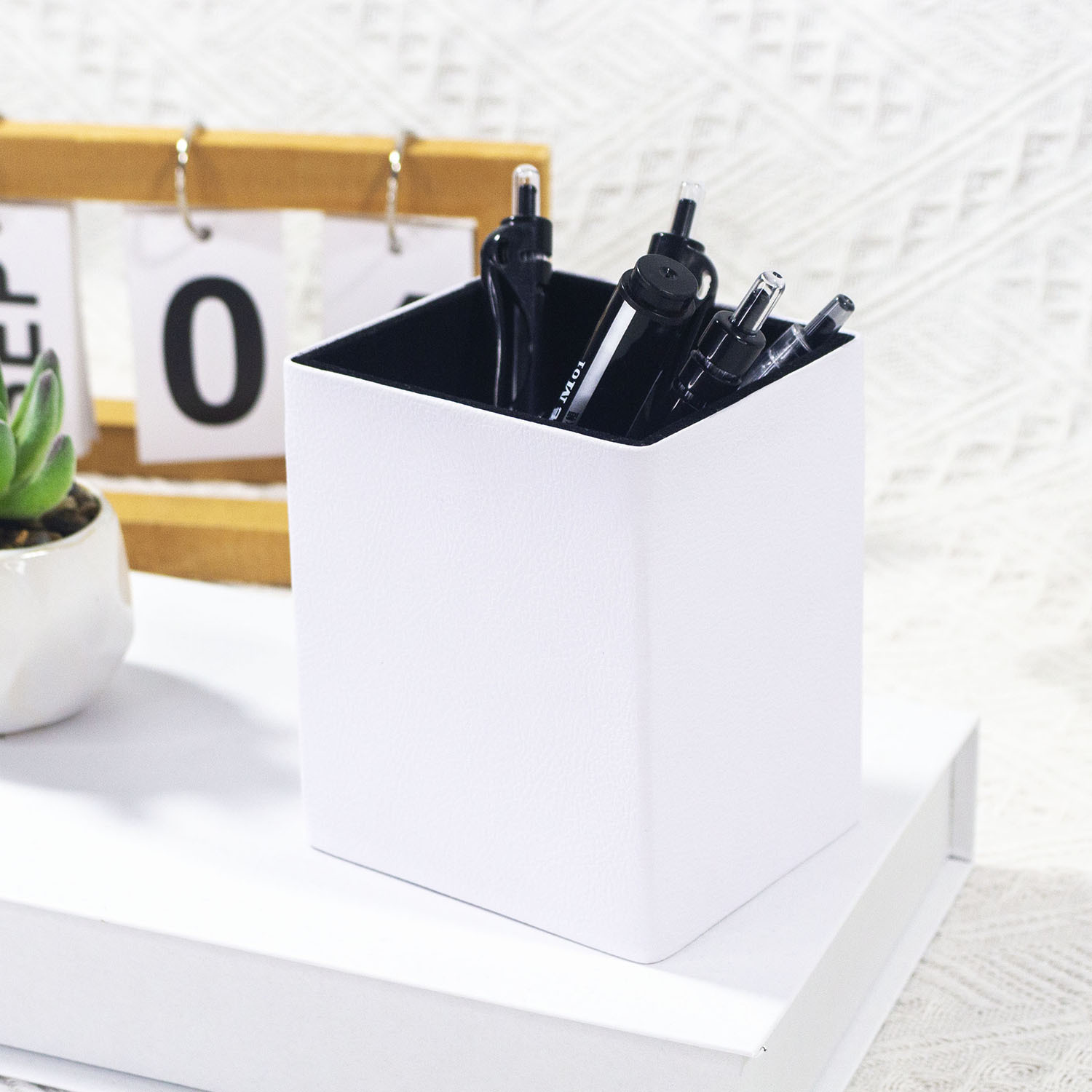 新しいペンホルダー大容量学生デスクトップ革ペンホルダー収納ボックスクリエイティブファッション正方形多機能ペンホルダー