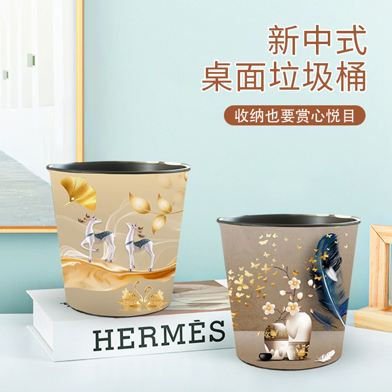 デスクトップゴミ箱家庭用リビングデスクレストラン蓋なし収納筒ゴミかご軽豪華車載小紙かご